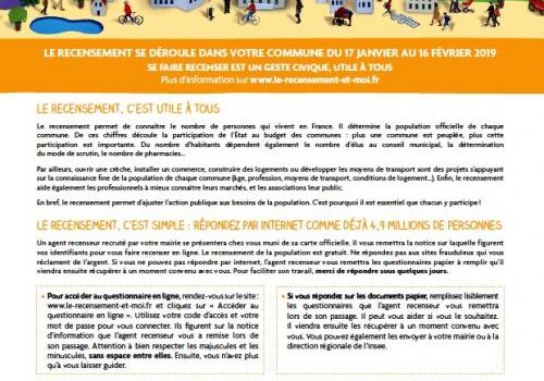 Cette année 2019 sera marqué par le recensement de notre population locale. Cette opération sera réalisée par deux agents recenseur qui se partageront notre vaste territoire. D’une part Elise BUCHE […]